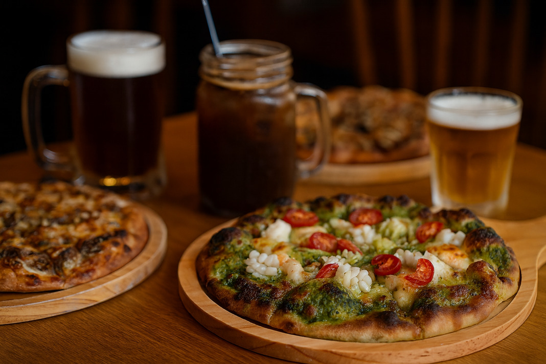 Enjoy a fresh pizza and a drink—ideal for a relaxed moment on your own, with friends, or with family.
